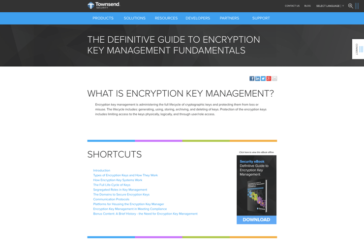This pillar page covers everything a potential buyer wants to know about the topic of encryption key management. From the types of encryption keys to their lifecycles, all the way through platforms and compliance concerns.