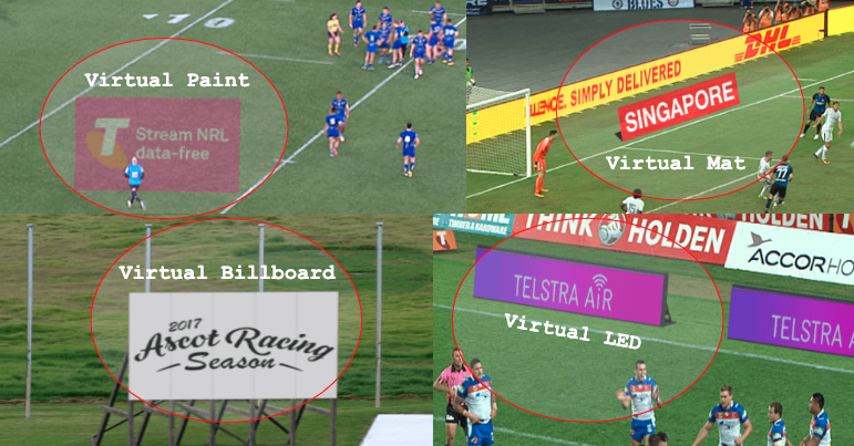 Virtual ads, which include 1) virtual paint; 2) virtual mats; 3) virtual billboards; 4) virtual LED. All of these services expand the “ad inventory” for live sports events.